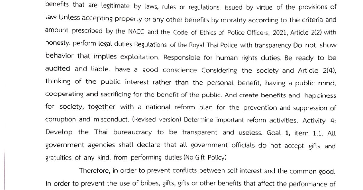 Announcement of Angthong Provincial Police Subject: Anti-Bribery Policy (Anti-Bribery Policy)
