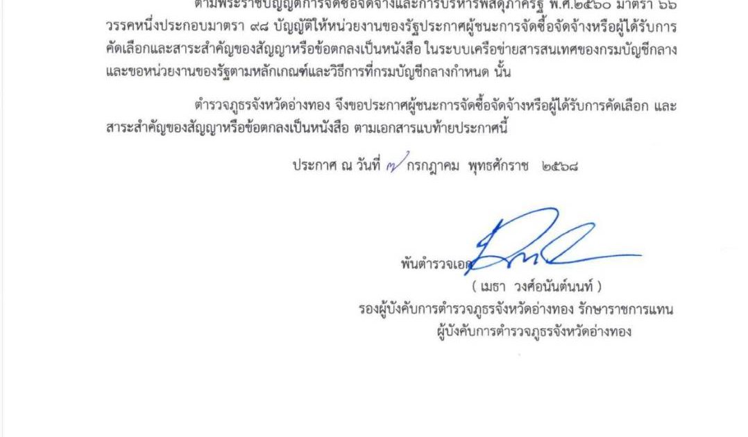 ประกาศผู้ชนะการจัดซื้อจัดจ้าง ไตรมาสที่ 3 ภ.จว.อ่างทอง
