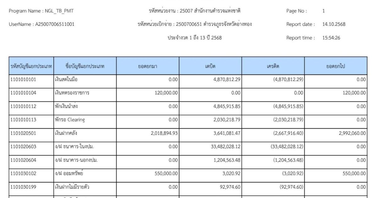 รายงานงบทดลองหน่วยเบิกจ่ายรายเดือน ภ.จว.อ่างทอง