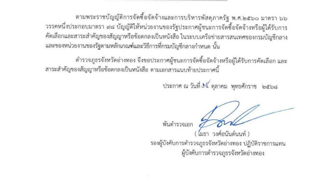 ประกาศผู้ชนะการจัดซื้อจัดจ้าง