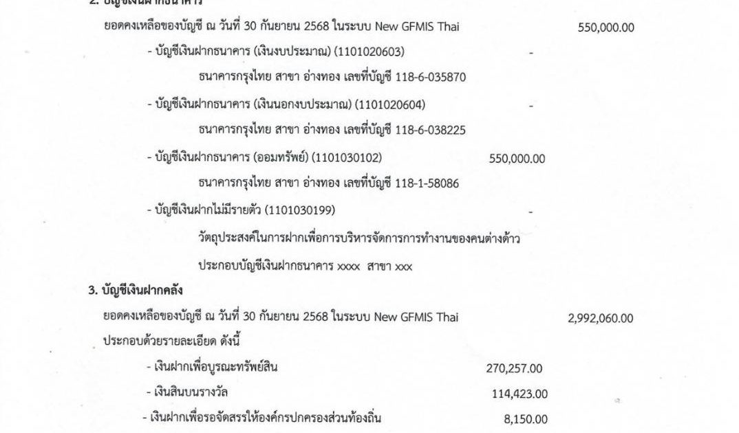 การแสดงรายละเอียดประกอบรายการบัญชีที่สำคัญของงบทดลอง ประจำเดือนกันยายน 2568 ภ.จว.อ่างทอง